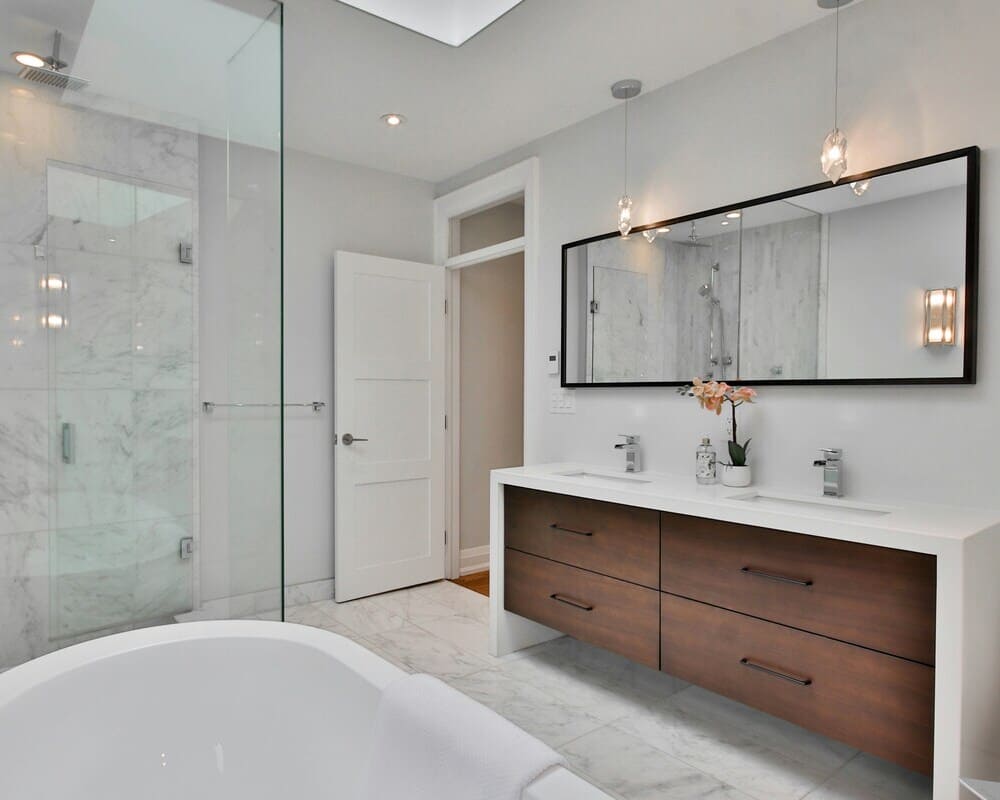 Minimalist Wall Lamp & Modern Bathroom EleganceMinimalist Wall Lamp & Modern Bathroom Elegance